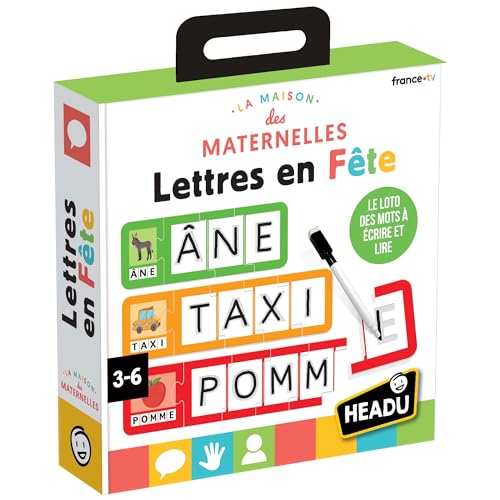 HEADU - Lettres en Fête - Le Loto des Mots À Écrire Et Lire | Jeu Educatif 3 4 5 6 Ans, en Collaboration avec Les Maternelles, Cadeau Enfants, Cadeau Fille, Cadeau Garçon, Made in Italy