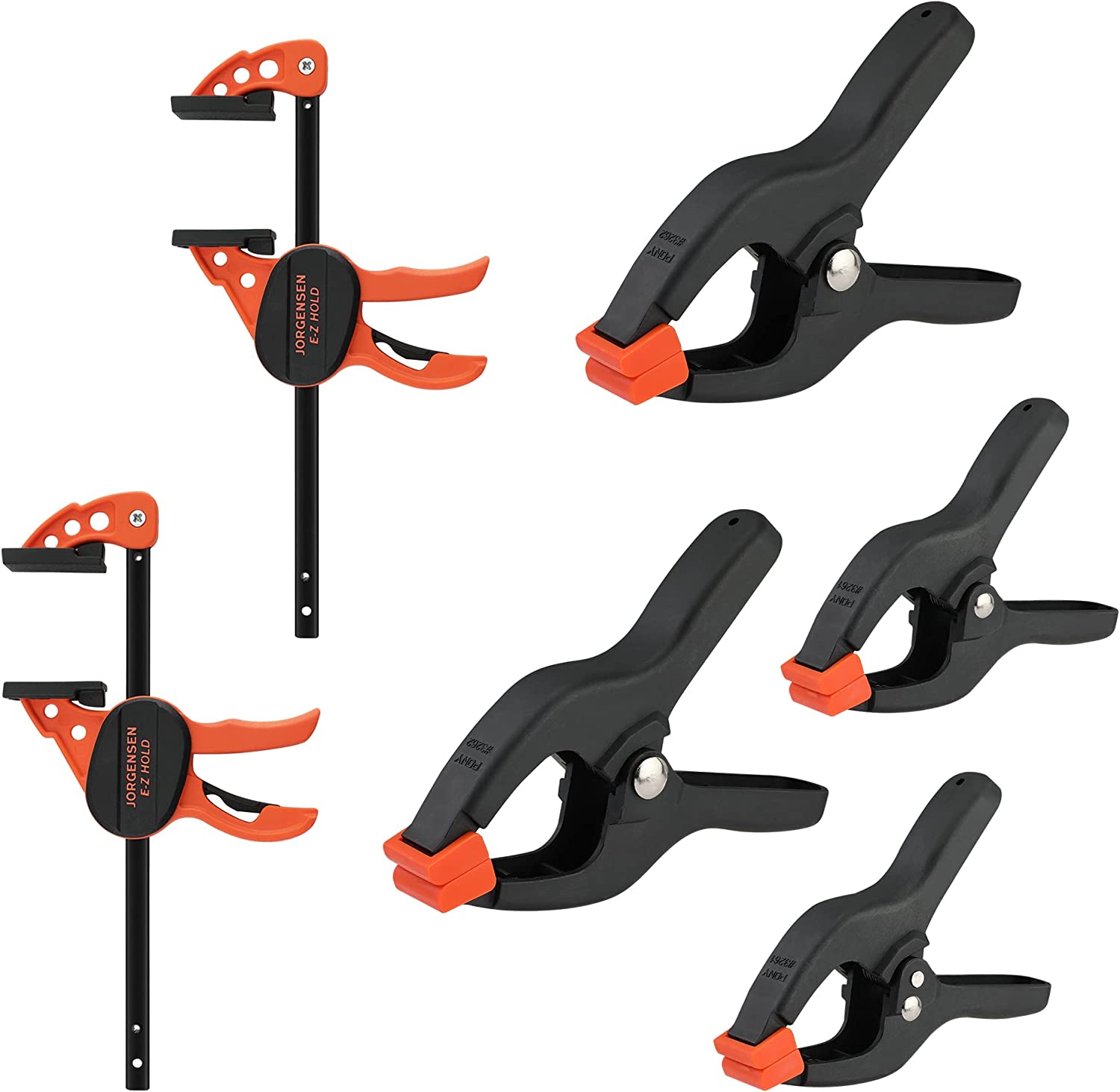 Serre-Joint et 4 Pinces a Ressort JORGENSEN avec Ouverture de 25, 50mm, Jeu de 2 Mini Serre-Joint a une Main de Liberation Rapide avec Ouverture jusqu'a 103mm et Force de Serrage Maximale 136kg
