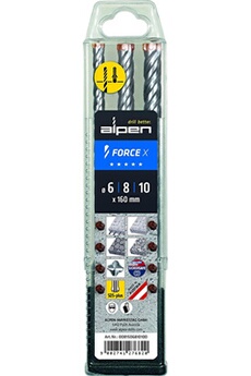 Alpen Force X Jeu de 3 forets SDS-plus pour marteau perforateur avec boîte en plastique 4 tranchants Argenté Ø 6,0/8,0/10,0 mm