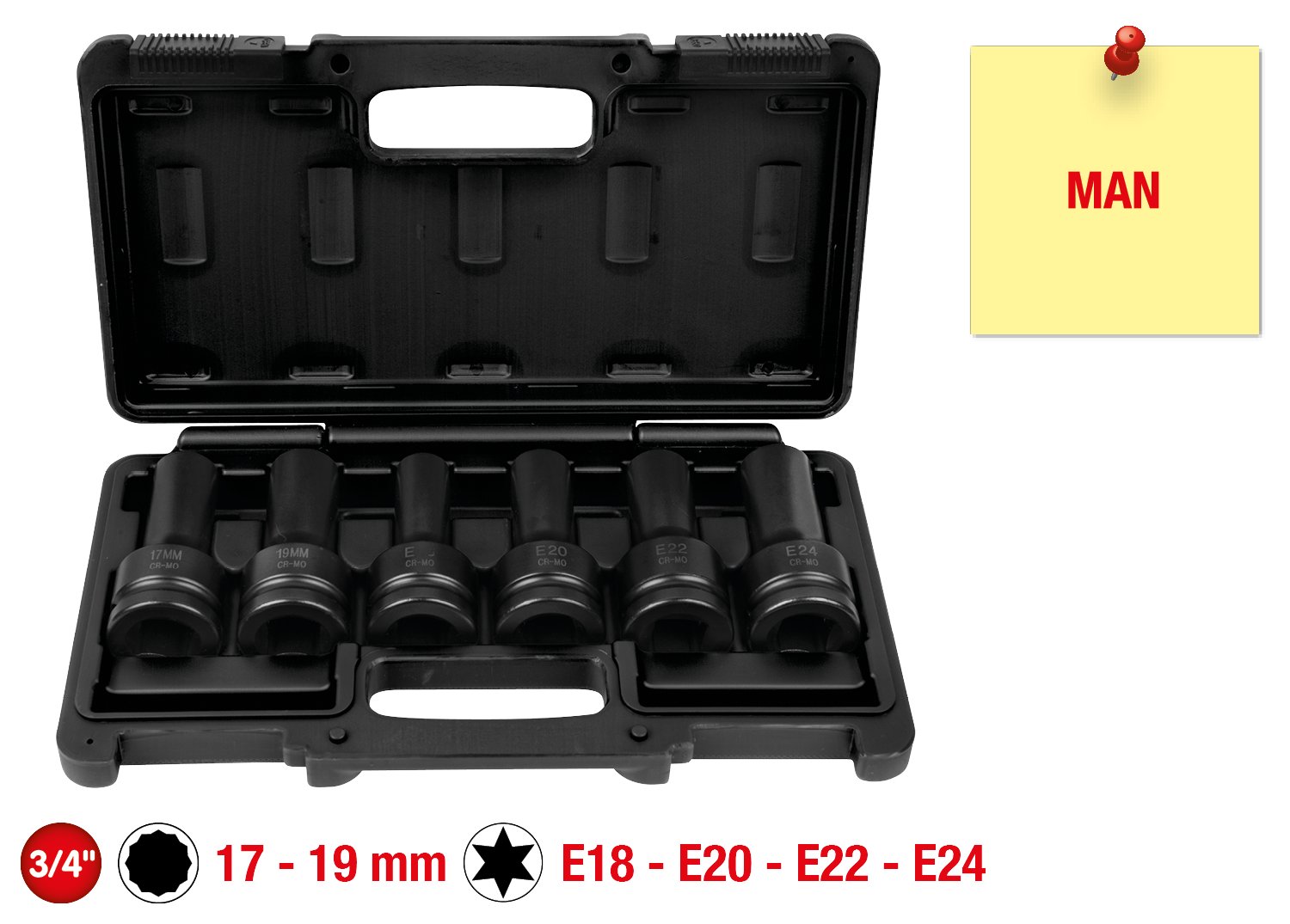 jeu de douilles à embout de force 3/4", 6 pces, 14-24mm