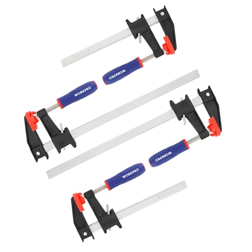 WORKPRO Jeu de Serre-joint Métallique à Libération Rapide 4 Pièces, Largeur de Serrage 300 mm et 150 mm, Force de Serrage Maximale de 272 kg pour Travail du bois, des Métaux et DIY