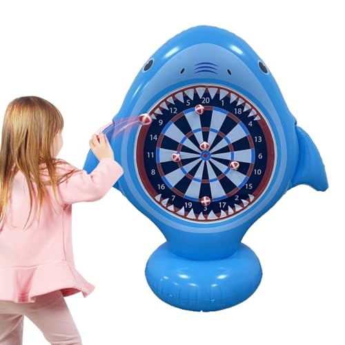 Jeu d'eau gonflable géant - requin en PVC de 130 cm - Jouet de lancer d'extérieur pour - Jeu de piscine d'été avec 6 balles - Activité de fête de jardin pour - de