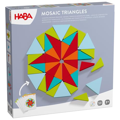 HABA Jeu de Mosaïque Triangles – Jouet en Bois pour Enfants dès 3 Ans – Jeu Éducatif avec 10 Cartes Modèles & 48 Triangles en Bois – 2012371001