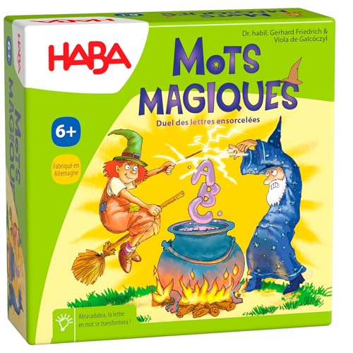 HABA Mots Magiques – Jeu éducatif Lettres dès 6 Ans, Apprentissage Alphabet & Lecture, Jeu Enfants 1–4 Joueurs avec Figurines Bois, Voyage & école – 1004912002