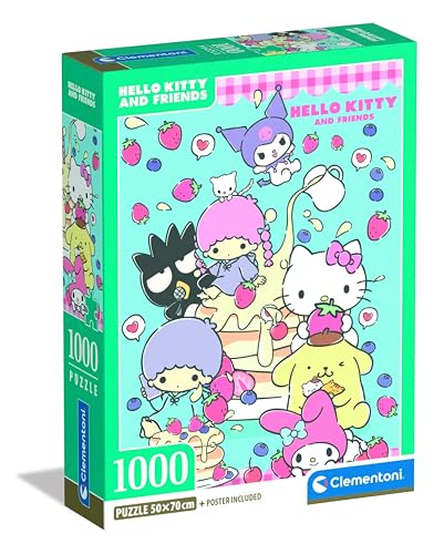 Clementoni – Puzzle 1000 Pièces Hello Kitty – 14 Ans et + – Jeu de société Kawaii, Illustration Mignonne – Idée Cadeau
