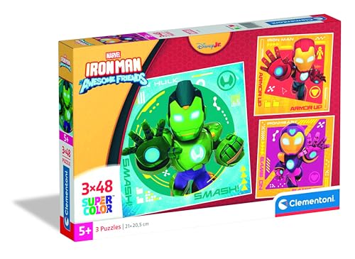 Clementoni – Puzzle Enfant Iron Man et Ses Amis Incroyables 3x48 Pièces – 5 Ans et + – Jeu de société Super-héros – Idée Cadeau