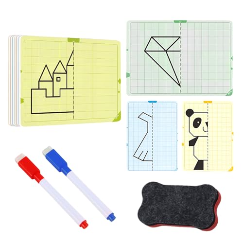 KAWENGIN Jeu Éducatif de Symétrie à Dessiner - Kit Complet avec 20 Cartes à Redessiner, 2 Marqueurs Effaçables et 1 Effaceur - Apprentissage du Dessin Symétrique pour la Maternelle et la Maison
