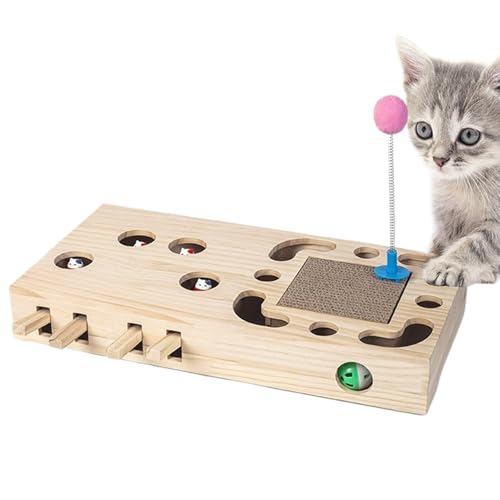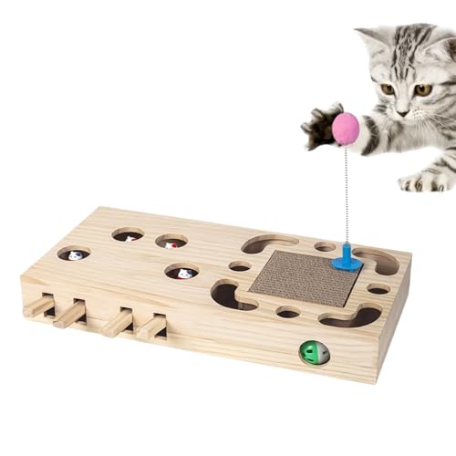 Jouet interactif d'apprentissage des chats : jeu pour frapper la taupe, jouet pour gratter le chat | Jouet pour chat en bois, jeu d'activités, boîte de puzzle pour former et