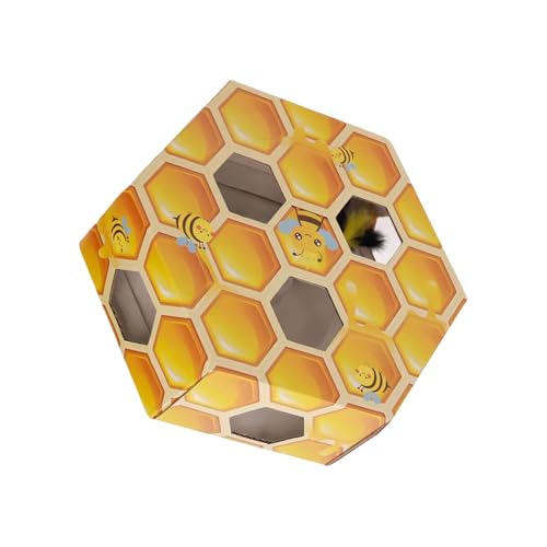 NUEAYMS Jouet Hexagonal Automatique avec Jeu De Taupe À Plumes Rotatives Exercice Chaton D'intérieur pour La Prévention Dispositif Divertissement pour Chats en Papier Ondulé