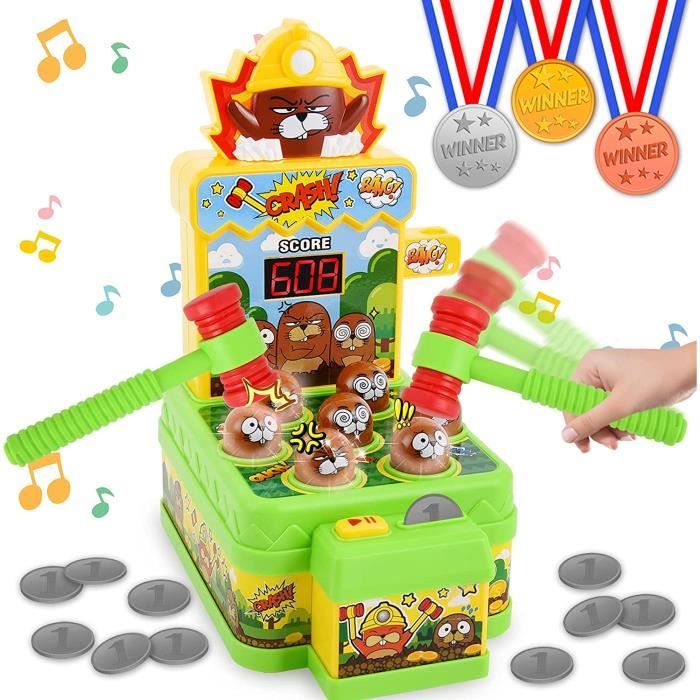 Jouet De La Taupe Hit Mole avec 2 Marteaux+12 Devises de Jeu Mini Jeu darcade électronique Interactif Marteler des Jouets Enfant
