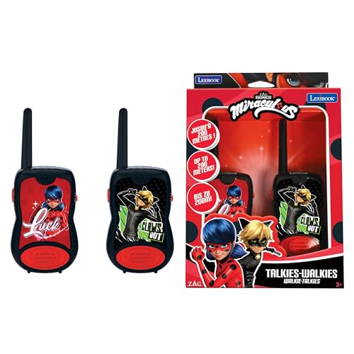Lexibook - Miraculous Talkies-Walkies 200m, Jeu de Communication pour Enfant, 2 canaux de Communication, Clip Ceinture, Noir/Rouge, TW12MILXB