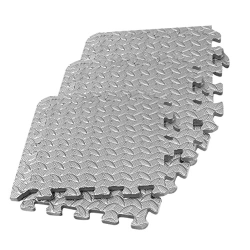 BCOATH Lot de 6 Tapis de Sol Patchwork en Eva 30x30 Cm à Motif Feuilles, Antidérapants et Absorbants, Épais Coussins de Sol pour Salle de Sport, Yoga et Jeu, Gris