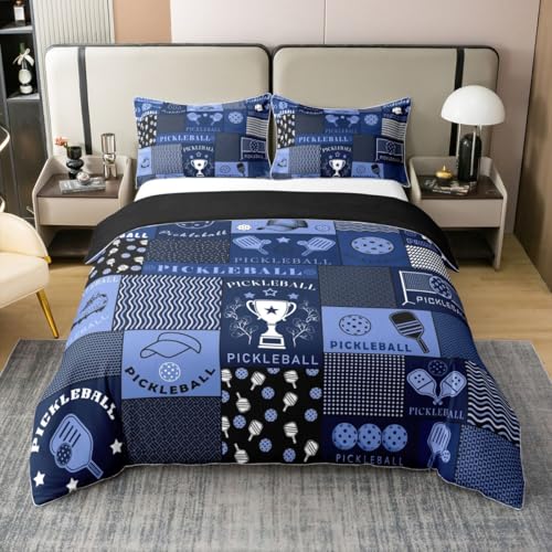 Homewish Housse de Couette 220x240 Jeunes Athlète Pickleball Bleu Garçons Sports,Parure de Lit Enfant Jeu de Patchwork,Sets de Housses de Couettes Jeux Géométriques,Couvre Lit Checkered