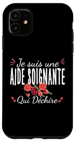 Je suis Une Aide Soignante Qui Déchire avec Fleurs Coque pour iPhone 11