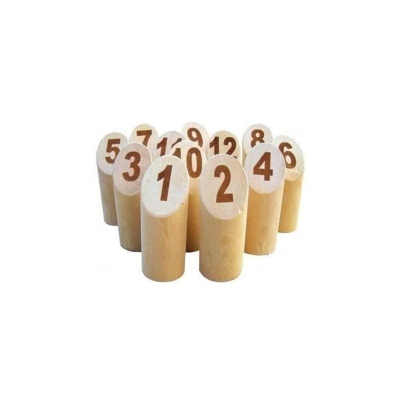Livoo - Jeu de quilles Nordiques JEU006 – Bois FSC, 12 quilles Ø 4,5 cm, 1 quille à Lancer, Sac en Coton, à partir de 2 Jours, à partir de 6 Ans