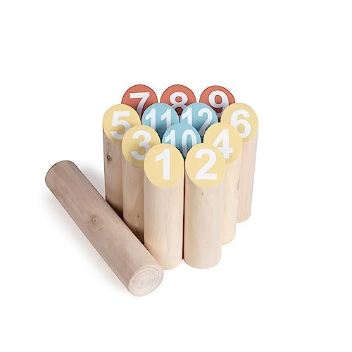 Toyfel Original Jeu de Kubb XXL en Bois Massif FSC® avec Sac de Transport & Mètre Ruban - Jeu Viking Extérieur - Quille Nordique – Ragnar
