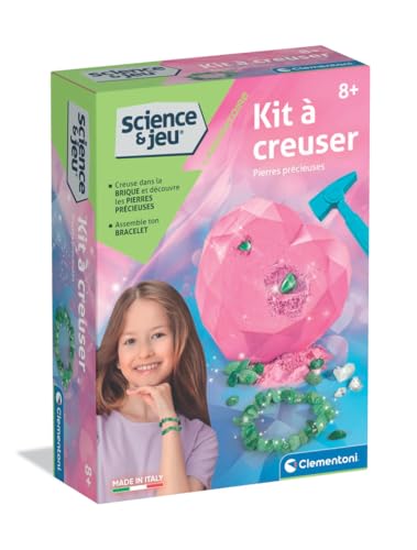 Clementoni - Kit à Creuser Pierres Précieuses – Dès 8 Ans – Jeu Scientifique Enfant de fouille et découverte, Jouet éducatif de Science et géologie, activité créative, Cadeau éducatif