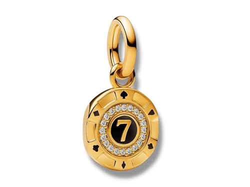 Jeton de jeu Casino Lucky N° 7 Jeton Jeu porte-bonheur Las Vegas Style – Breloque en argent sterling 925 plaqué or – Bracelet à breloques