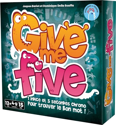 Asmodee - Give ME Five - Jeu de Cartes Ambiance pour Adultes & Enfants dès 12 Ans - Jeu de Société Made in France - 1 Indice & 5 Secondes pour Trouver Le Bon Mot - 15 Min - 4 à 9 Joueurs -en Français