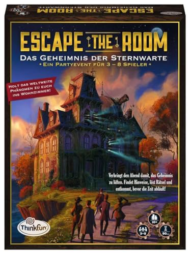 ThinkFun Escape Room Mister dans Le manoir de l'Observatoire, Jeu de logique, Jeu de société pour Enfants et Adultes, 3-8 Joueurs, Cadeaux Originaux pour Femme, Cadeau fête des mères