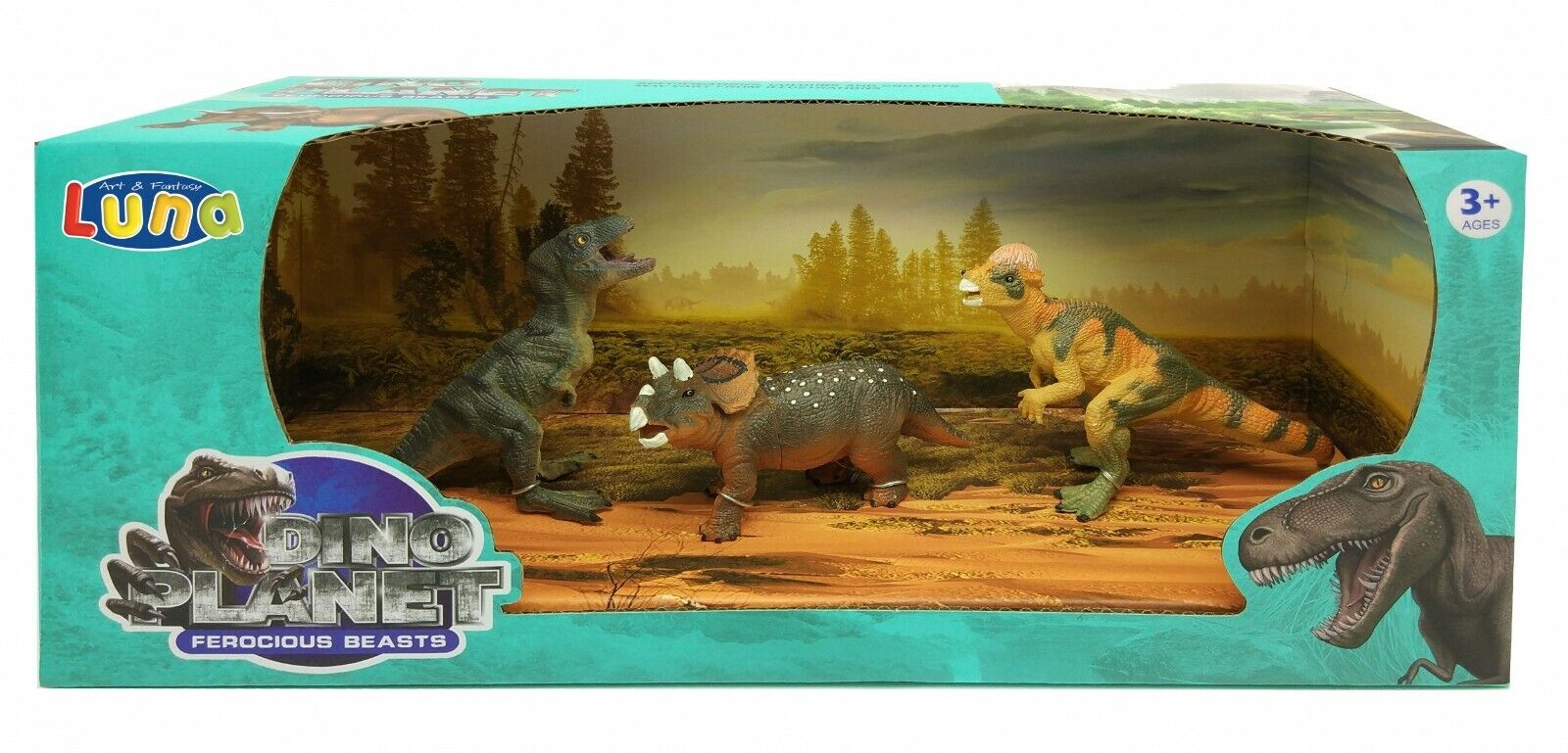 LUNA Ensemble de jeu dinosaures 3 pièces Triceratops T-rex Pachycephalosaurus