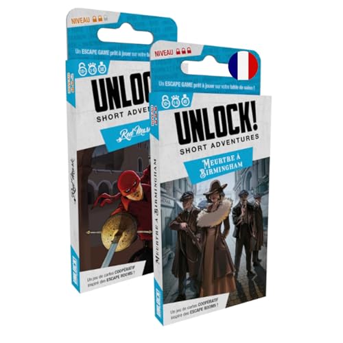 Asmodee - Unlock! Short Adventure – Jeu de Cartes Escape Game - 2 Enquêtes : Res Mask & Meurtre à Birmingham - Jeu de Société Dès 10 Ans - 1 à 6 Joueurs – Version Française – Space Cowboy