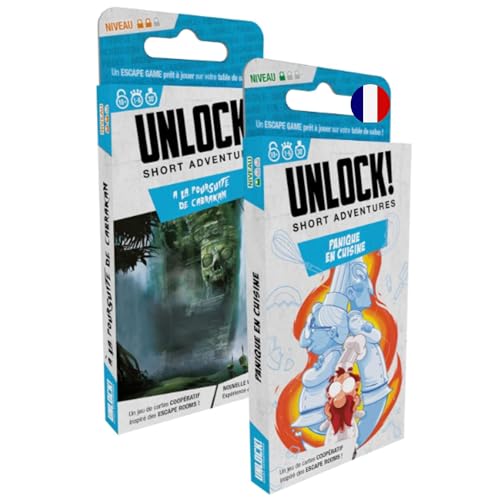 Asmodee - Unlock Short Adventure - Panique en Cuisine + A la Poursuite de Cabrakan - Jeu Escape Game Enfant et Adulte - Jeux de Cartes - Jeu Enfant à partir de 10 Ans - Version Française
