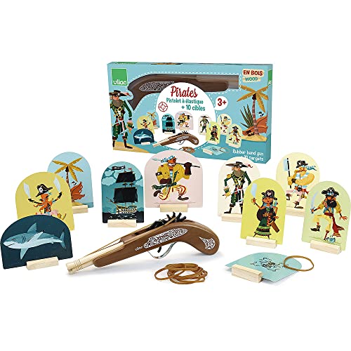 Vilac - Pistolet à Elastiques Pirates - Jeux d'Adresse - Jouets en Bois - Tir aux Elastiques - Jeu en Famille - Cibles - Développement de la Coordination œil-Main - à Partir de 3 Ans
