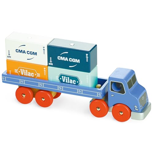 Vilac - Camion Porte conteneurs Vilacity - Jeu en Bois - A partir de 3 Ans - 2358