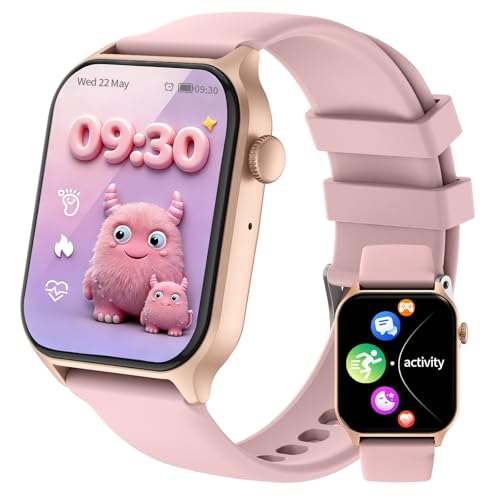 JUBUNRER Montre Connectée Enfant Moniteur de Sommeil Fréquence Cardiaque Podomètre Calories Modes Sport Bluetooth Appel étanche Réveil Jeux Jouet Fitness Tracker Cadeau- Fille Garçon Adolescent 3+ Ans