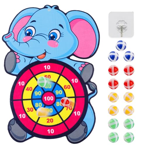 Cible de Fléchettes pour Enfants, 41,5 CM Éléphants Jeu de Fléchettes, Jeux Flechette Enfant avec 15 Balles Collantes 1 Crochet, Jeux de Fête Intérieurs et Extérieurs Garçon Fille, pour de 3 à 6 Ans