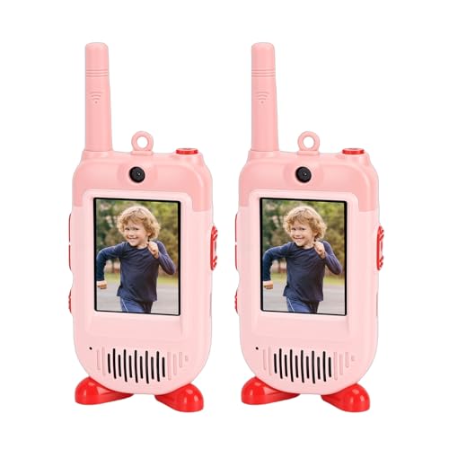 HUSHUI Radio Vidéo pour Tout-Petits, Vidéo Rechargeable à 2 Voies avec Technologie de Communication Stable pour Jouer en Intérieur et en Extérieur, Jeux en Famille, Camping, Randonnée (Rose)