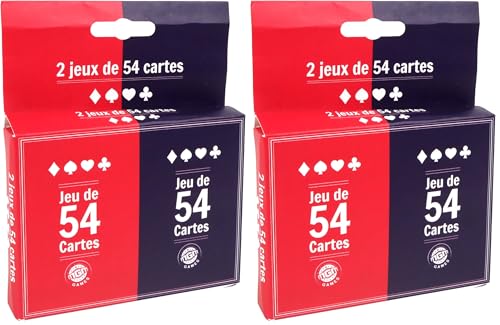 MGM GAMES - 2 jeux de cartes avec 54 cartes - Rouge et bleu - 144634LINA - Jeu de cartes - Carton - 2 à 6 joueurs - Cartes à jouer - Jeux de société - Jeux de voyage - Belote - Poker - Rami - 8,5 cm x