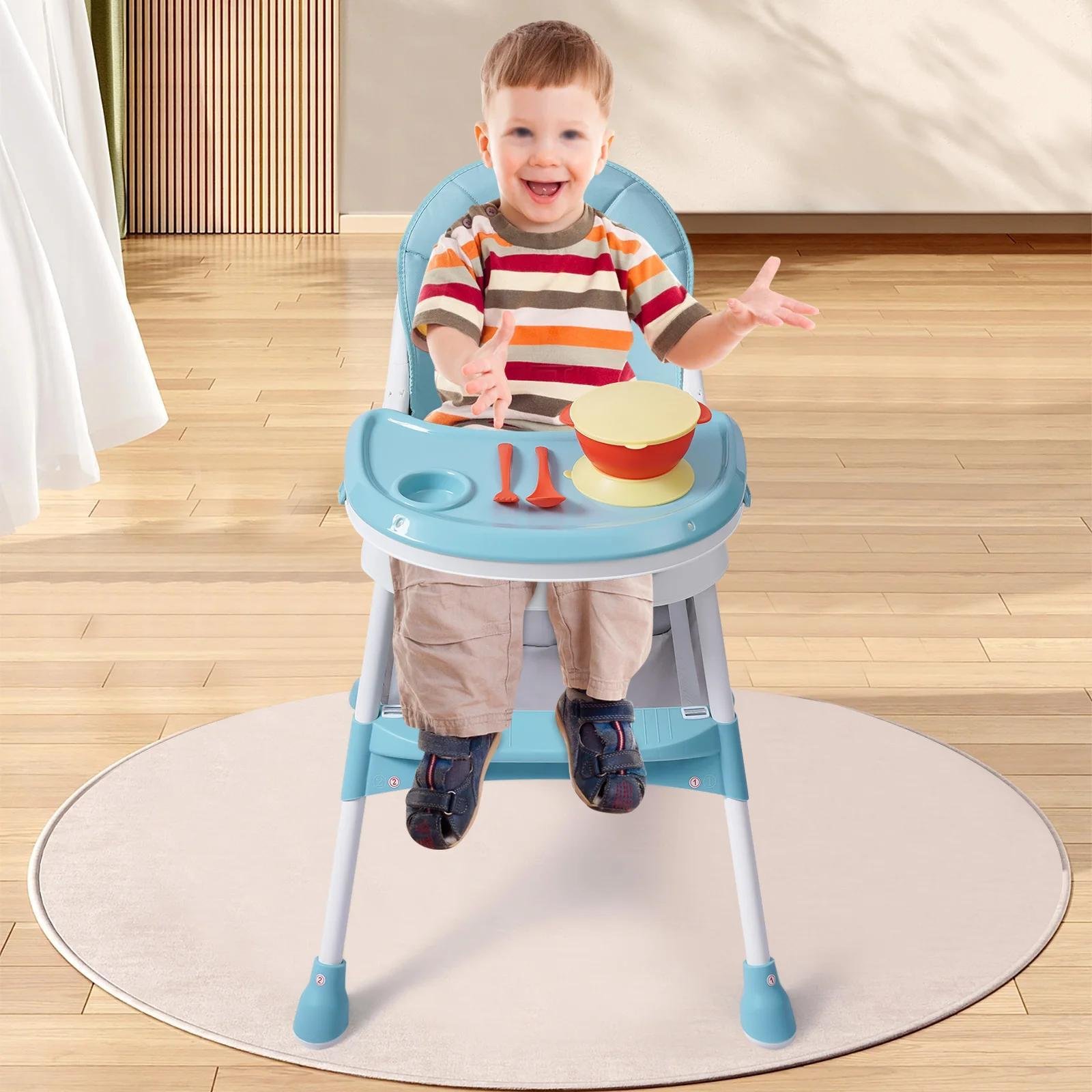 Chaise haute pour bébé - Chaise haute pour enfant - Pliable - 2-en-1 : repas et jeux - Réglable en hauteur - Structure en métal - Couverts en PP adaptés au contact alimentaire, 1 jeu - Âge : 1 à 2 ans - Bleu