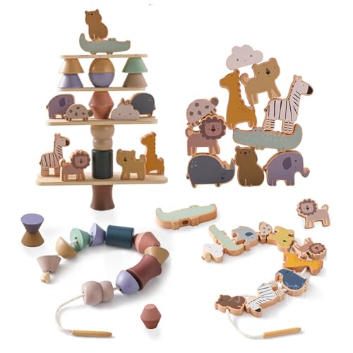 Smartwo Animaux en Bois à Empiler et à Enfiler, Motricité Fine 2 Ans, Jeux en Bois 2 Ans, Jouet Empilable Bebe, Grosses Perles pour Enfants, Jeux Montessori 2 3 4 5 Ans, 30 PCS