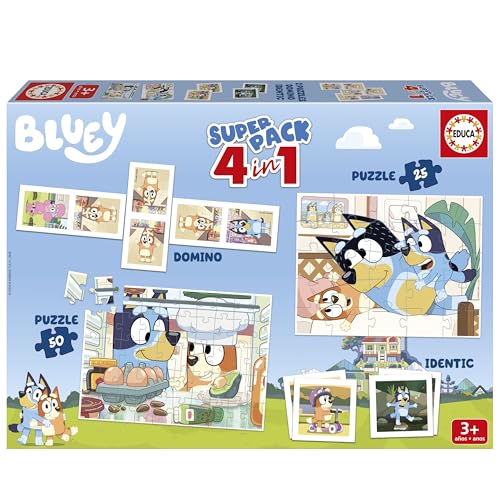 Educa - Superpack Bluey | Jeux de société et Puzzles pour Enfants 25 et 50 pièces: Dominos, Identic. Jeu pour Enfants de 3 à 5 Ans (20475)