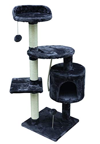 PawHut Arbre à Chat, Tour de Jeux pour Chat, Grande Plateforme, 2 niches et Balle en Peluche, griffoirs en sisal, plusieux Niveaux, Convient aux Chats jusqu'à 7 kg, 45 x 40 x 66 cm, Gris foncé