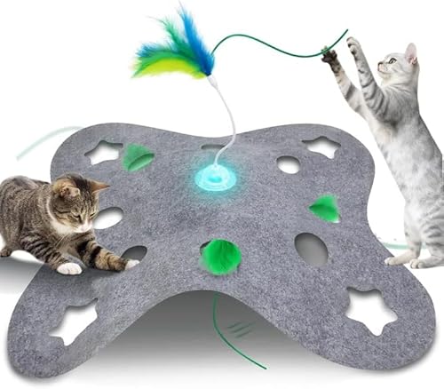Iokheira Jouet Chat Interactif, Jouet Chat Automatique Rechargeable avec Plumes, Tapis Hide-and-Seek avec Trous, Jouet Chaton et Chat Adulte, Jeux pour Chat Intérieur, Jouets pour Chats