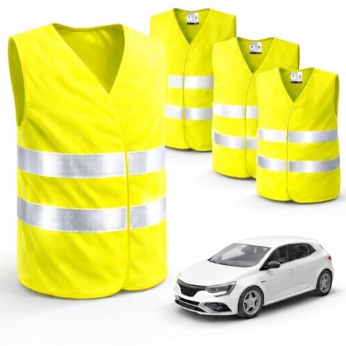 autogadget 4X Gilets de sécurité Jaunes pour Voitures 2026 Selon ISO20471 - Gilets de sécurité pour Voitures et camions pour la sécurité dans Le Code de la Route - Accessoires pour Voitures