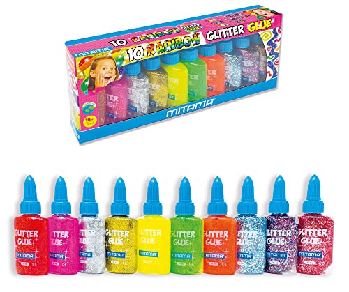 Mitama Boîtes Jeu Kit Créatifs - Colle Glitter - 3D Raimbow - 10 Flacons 37 ml - Fluo, Brilliant, Paillettes - Jeux Créatifs pour Enfants, Filles - Jeux Formatifs