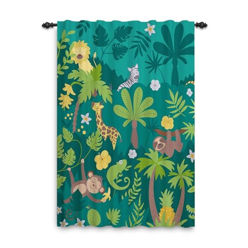 ggaimwf Rideaux Jungle Safari à Plis Crayon Animaux Forêt Tropicale Zoo de Dessin animé coloré Rideau de fenêtre pour Chambre d'enfant Salle de Jeux de la crèche Onglet arrière 107x160cm 1 Panneau