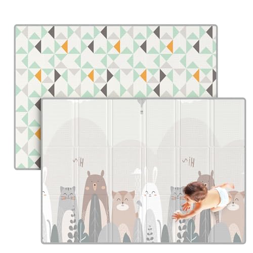 Julrrimg 200X130cm Tapis Bebe Pliable avec sac de Transport, Imperméable Tapis Enfant, Tapis de Jeux Bebe, Tapis d'éveil Antidérapant avec Renforcement des Bords