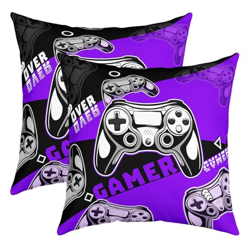 Homewish Lot de 2 Housse de Coussin 45x45 Enfant Garcon Housse d'oreiller Jeux Vidéo pour Ados, Taie d'oreiller pour Jeux, Coussin Décoratifs Console de Jeux, Décoration de Chambre, Pourpre Noir