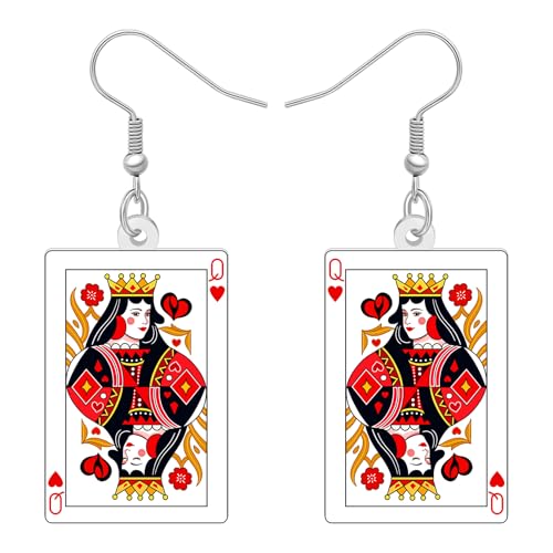 NEWEI Acrylique Drôle Poker Cartes Pendantes Boucles d'oreilles Cadeaux pour Femmes Filles Classique Cœur Dame Jouer Cartes Déclaration Bijoux Poker Cadeaux pour les amateurs de jeux de cartes, M