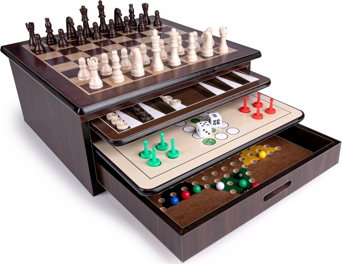 Lifetime Games Boîte de jeux 10in-1 - Jeux pour adultes - Échecs - Dames - Backgammon - Dans une boîte de rangement en bois