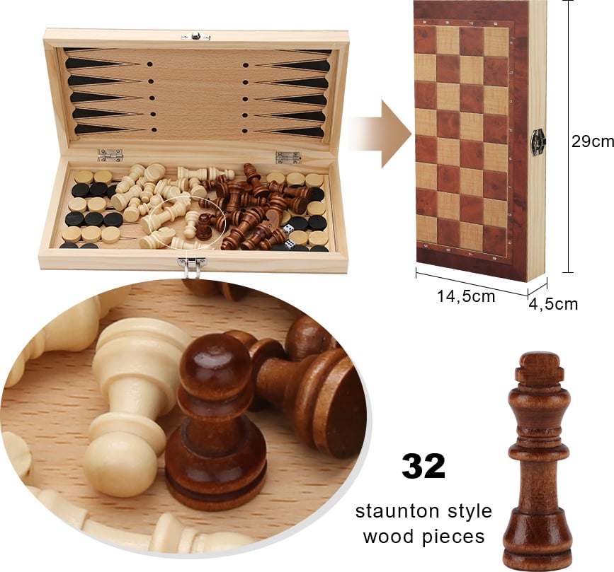 Nouveau Design 3 en 1 jeu d'échecs en bois Backgammon dames jeux de voyage jeu d'échecs échiquiers divertissement cadeau de noël
