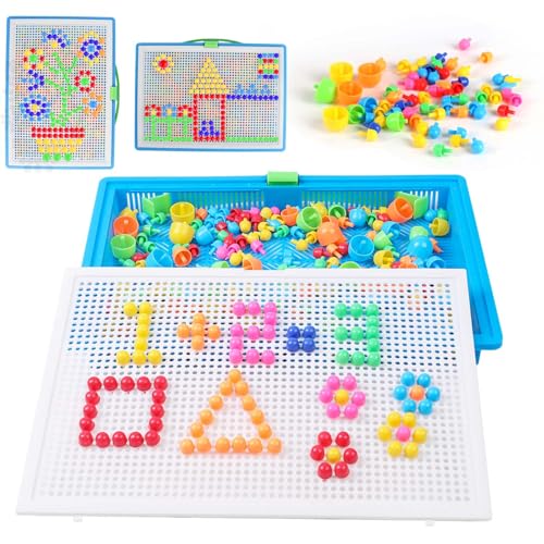 DERAYEE Creative Mosaïque Puzzle,296 PCS Jeux de Construction Colorée,Puzzle 3D Clous Champignon,Jeux Educatif Cadeau pour Enfant 3 4 5 Ans
