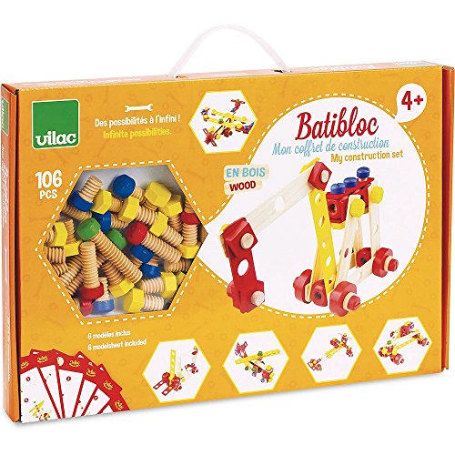 Vilac - Mon coffret de construction BATIBLOC - Jeu de construction en bois - A partir de 4 ans - 2139