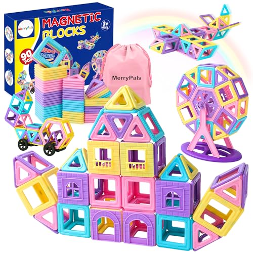 Construction Magnetique Enfant 90 Pièces Blocs de Construction Magnétiques Jouet pour Fille Garcon Enfants 3 4 5 6 7 Ans Jeux Magnetique Cadeaux d'anniversaire de Noël pour Enfants de 3 4 5 6 7 8 Ans