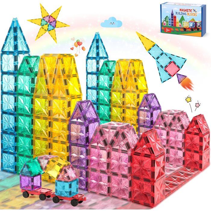 Jouet Enfant 2 3 Ans Construction Magnetique Enfant Magnetic Tiles Jeux Enfant 3 4 5 Ans64 Pièces Bloc De Construction Magnétique